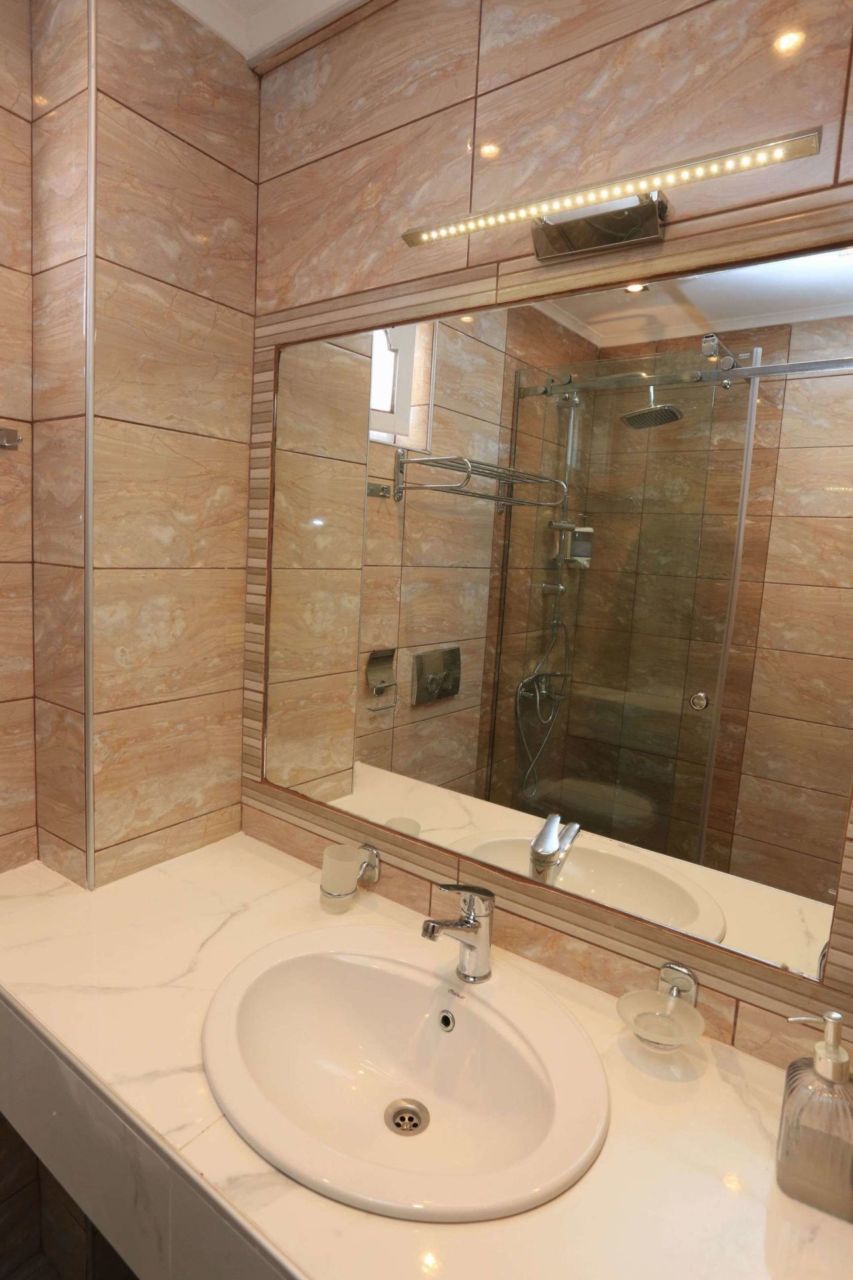 Das Badezimmer ist modern und renoviert, was die Morgenroutine glatter macht, wenn drei Personen sich teilen. Heiße Duschen nach salzigen Schwimmgängen, ein Platz, um sandige Füße abzuspülen, und genug Ablagefläche für Toilettenartikel. Ein kleines Detail, das den Rhythmus eines Urlaubs erheblich verändert.