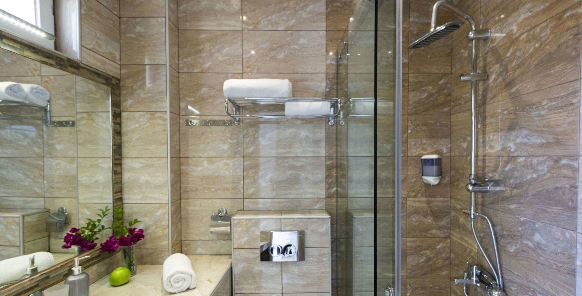 Reisen Sie mit Kindern, werden Sie es schätzen, alle ohne Hektik fertig zu bekommen. Und sind Sie mit Freunden unterwegs, bleibt alles einfach und zivilisiert, auch wenn alle gleichzeitig zurückkommen. An manchen Tagen will man sich nur kurz frisch machen und direkt los zum Essen – kein Aufwand.