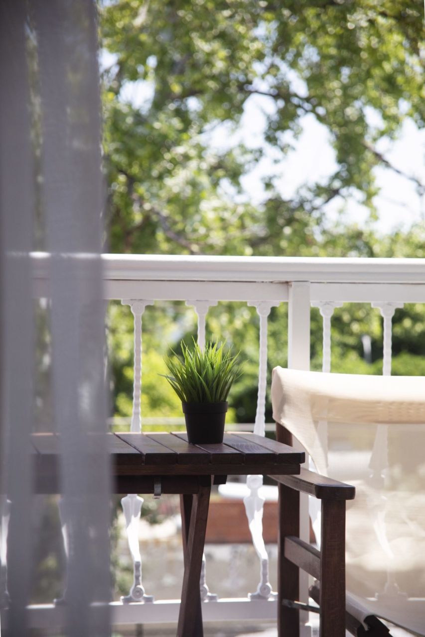 Sie bekommen den Komfort eines frisch renovierten Zimmers und die einfachen Urlaubsfreuden, die in Halkidiki zählen: eine ordentliche Nachtruhe, ein frisches Badezimmer und ein Balkon, auf dem Sie mit einem Kaffee sitzen und dem Garten beim Aufwachen zuhören können.